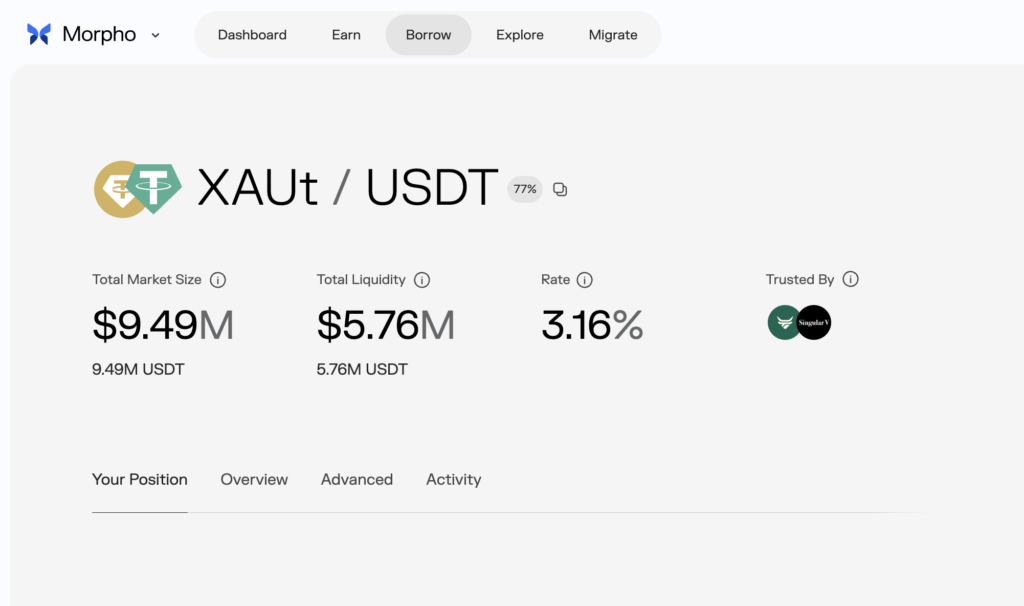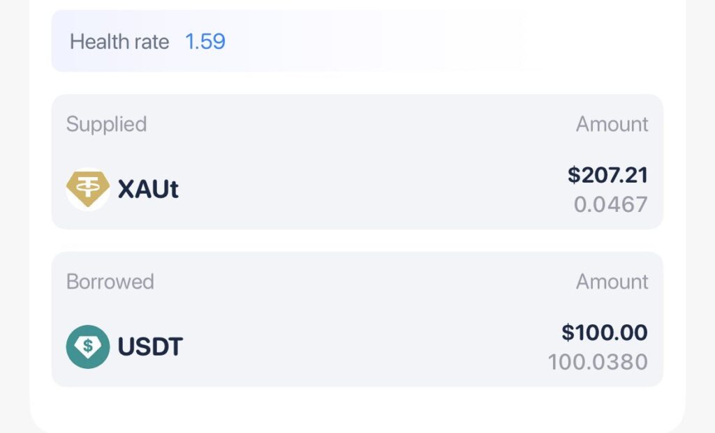 เอา XAUT (ทองดิจิทัล) มูลค่าประมาณ 200 USD ไปค้ำประกัน